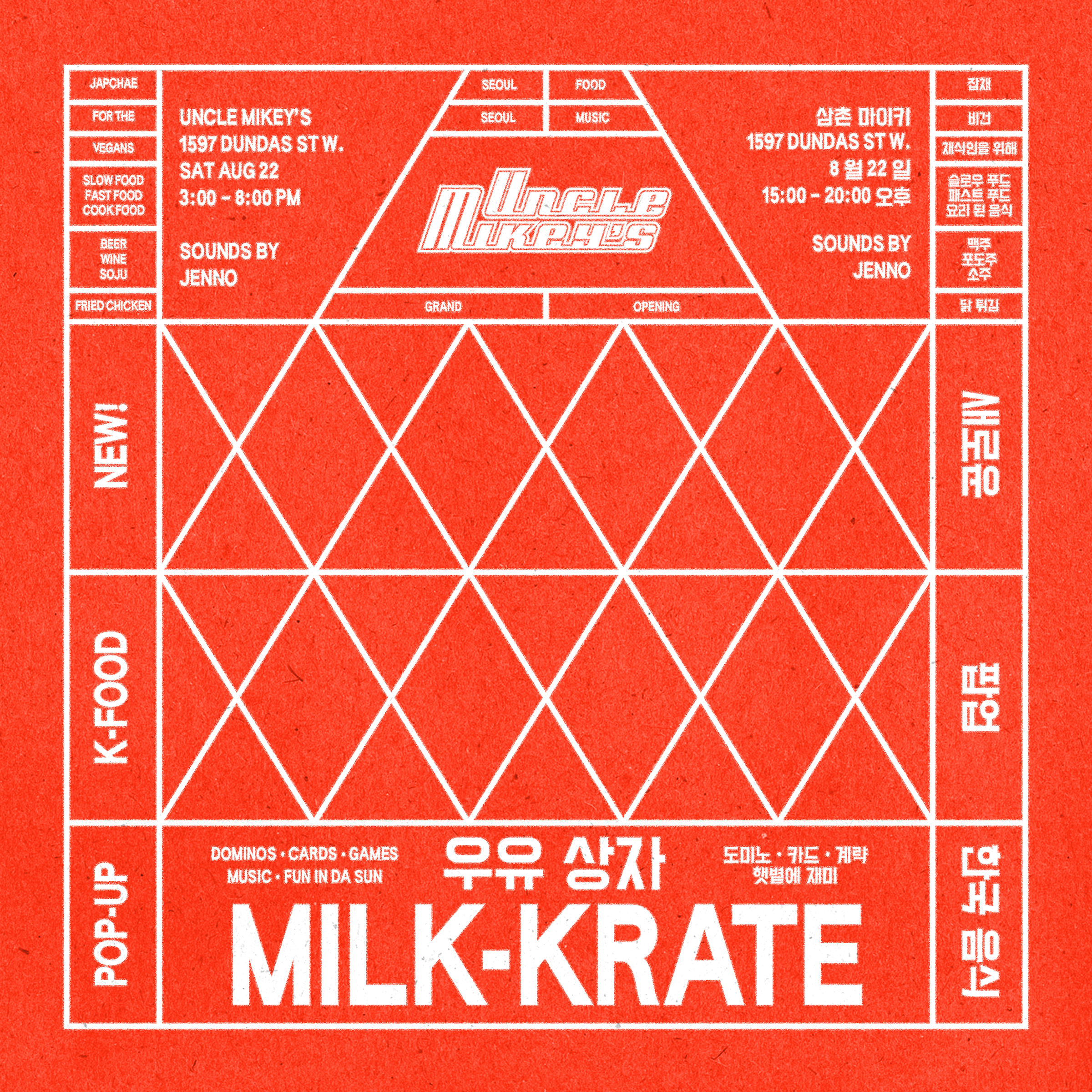 Uncle Mikey’s, a Korean restaurant on Dundas W. Needed to extend its brand during the pandemic to keep up with new demands. Strong visual identity, interior renovations, monthly activations, e-commerce, and other design-driven activations transformed Uncle Mikey’s into a neighbourhood creative staple.