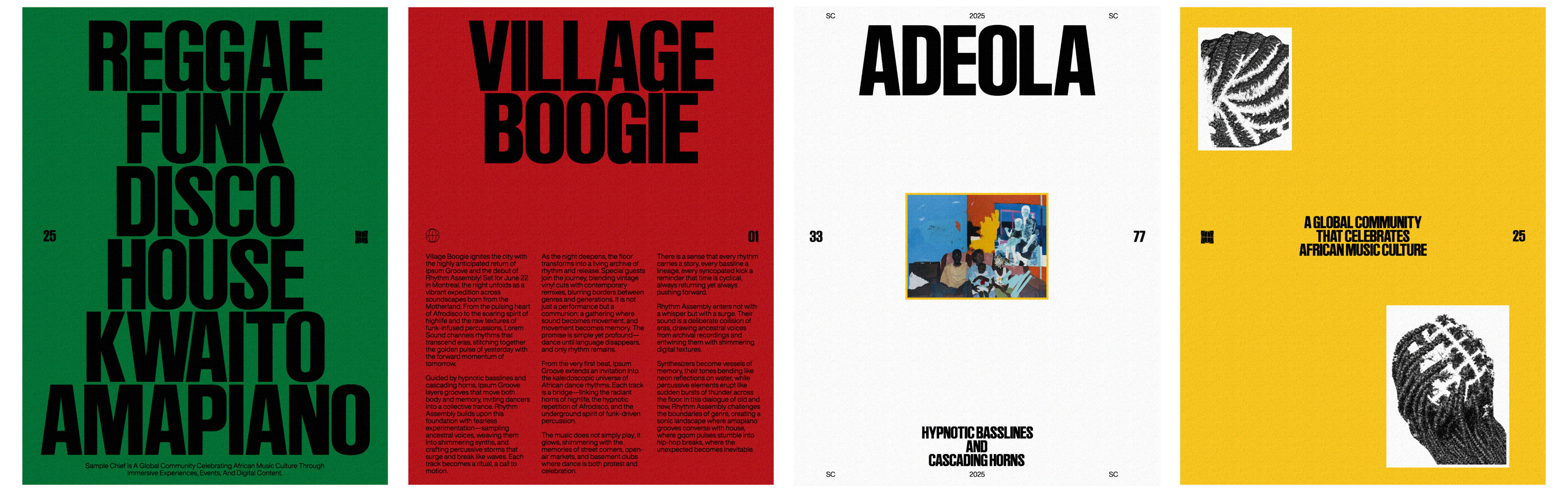 Built around Sample Chief’s mission to celebrate and expand African music culture globally, the branding channels energy, rhythm, and cultural depth into a scalable system.